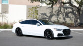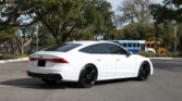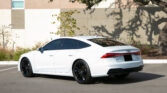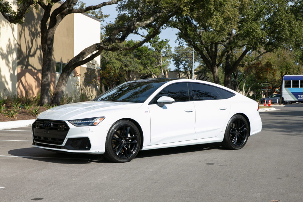The A7 has a Ibis White exterior paired with sleek black alloy wheels and tinted windows for a modern appearance. The S-Line trim elevates the car’s sporty aesthetics with a more aggressive body kit, larger 20-inch black alloy wheels with Continental tires, unique badging, and an upgraded grille. LED headlights and taillights with dynamic turn signals improve visibility and style. The power-operated liftback hatch offers a generous 24.9 cubic feet of cargo space, ideal for road trips or daily errands.